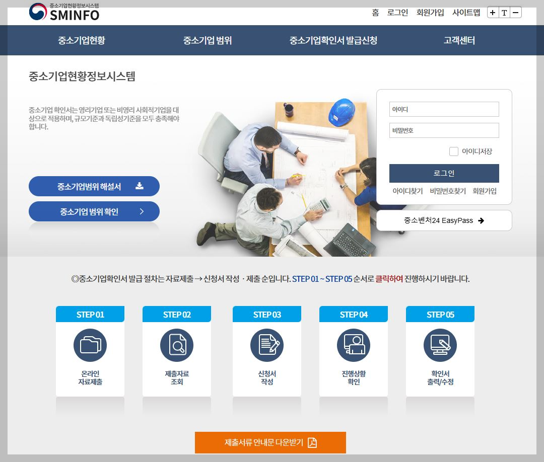 ① 중소벤처기업부 소상공인확인서 발급 시스템 접속