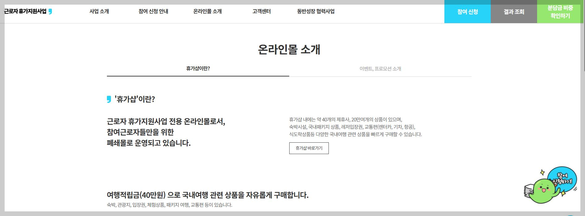 ▲ 근로자 휴가지원 신청 공식 사이트 ▲