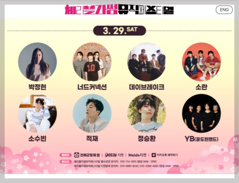 ② 체리블라썸 뮤직 페스티벌 (3월 29일~30일) - 진해공설운동장에서 인기 뮤지션들의 공연