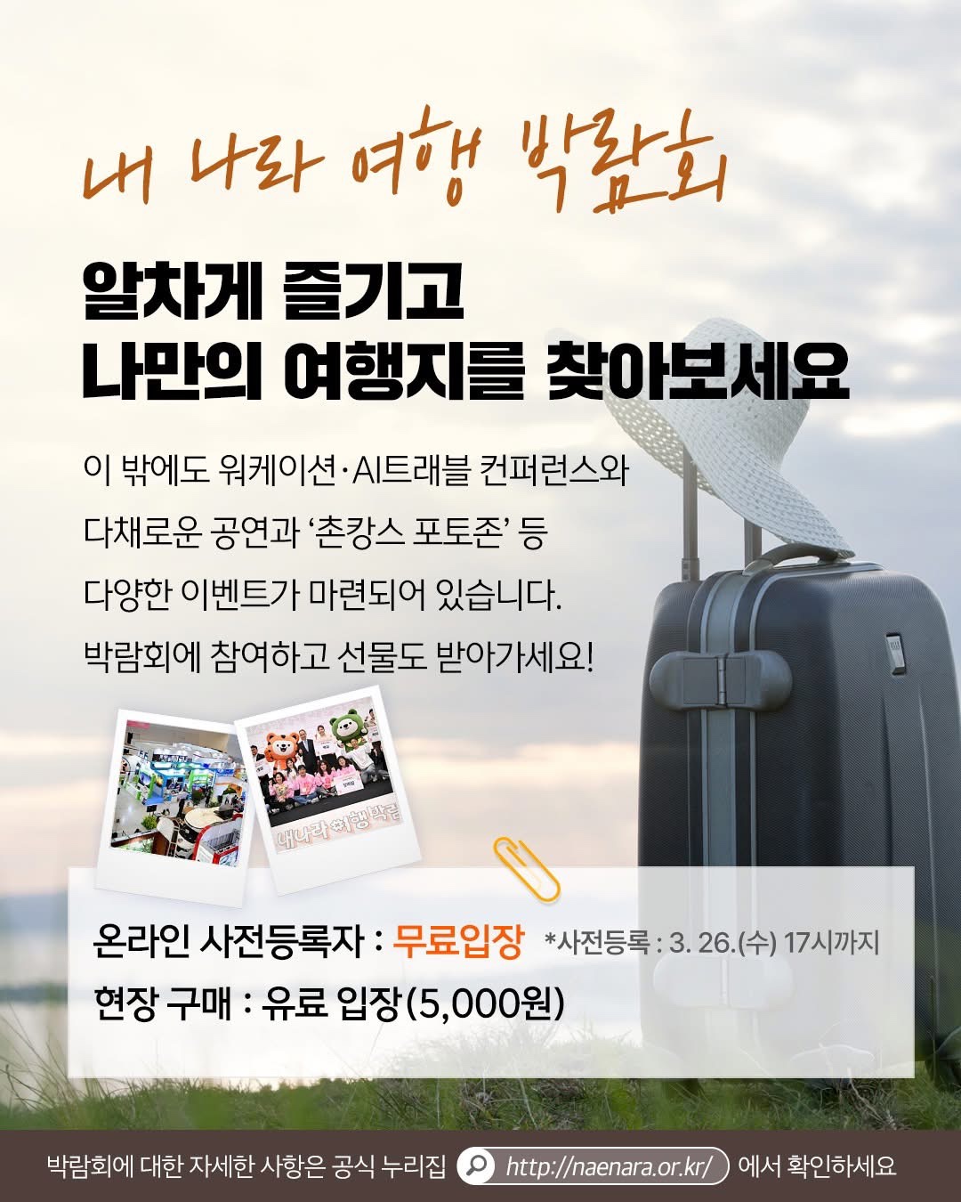 내나라 여행박람회 공식 홈페이지에서 온라인 신청 가능