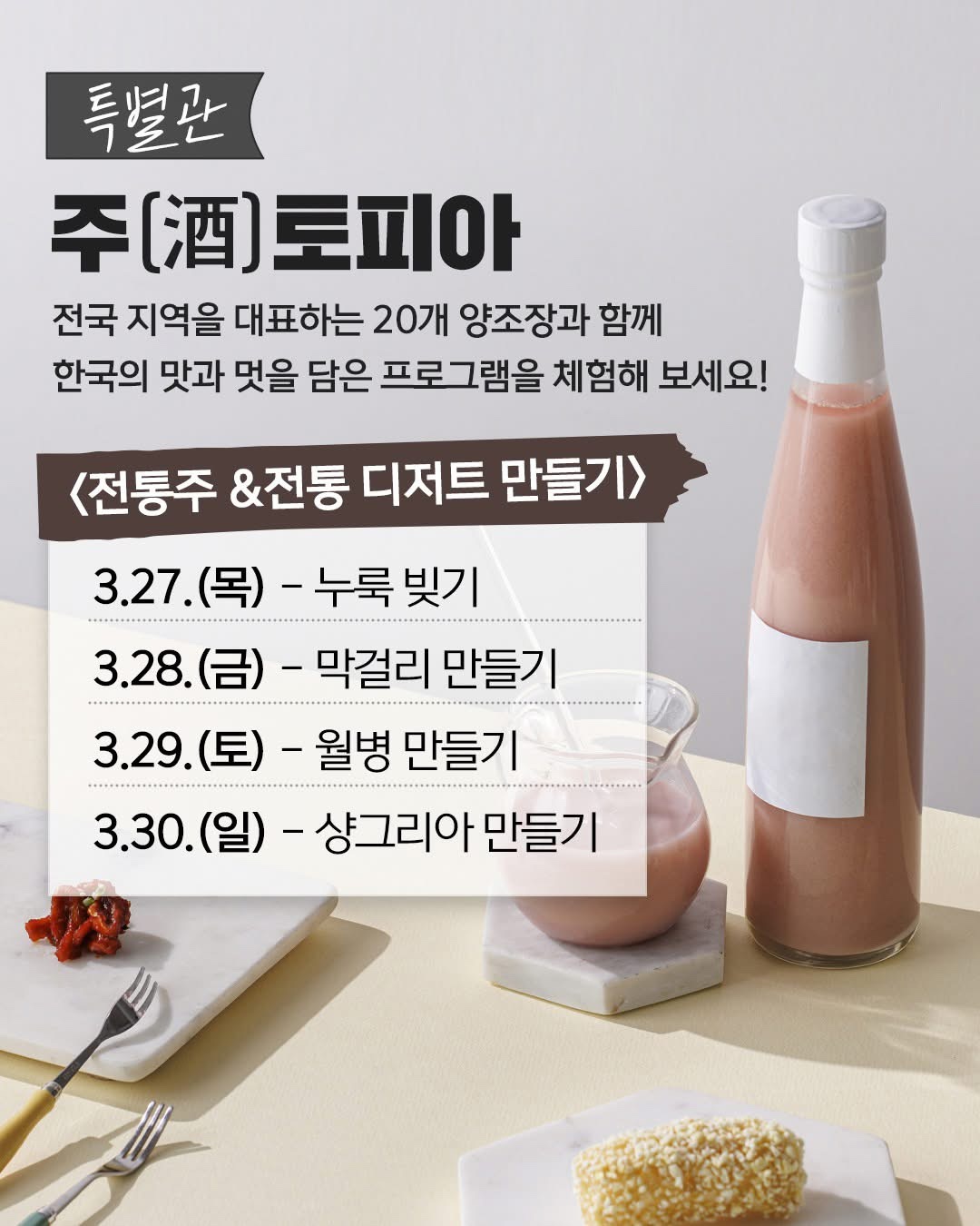 2025 내나라 여행박람회는 대한민국의 다양한 관광지와 전통문화를 한자리에서 경험할 수 있는 특별한 행사입니다. 특히 전통주 만들기 체험은 한국 고유의 양조 문화를 배우고 직접 체험할 수 있는 소중한 기회입니다. 여행과 전통문화에 관심이 있는 분들이라면 이번 박람회를 놓치지 말고 꼭 방문해 보시기 바랍니다.