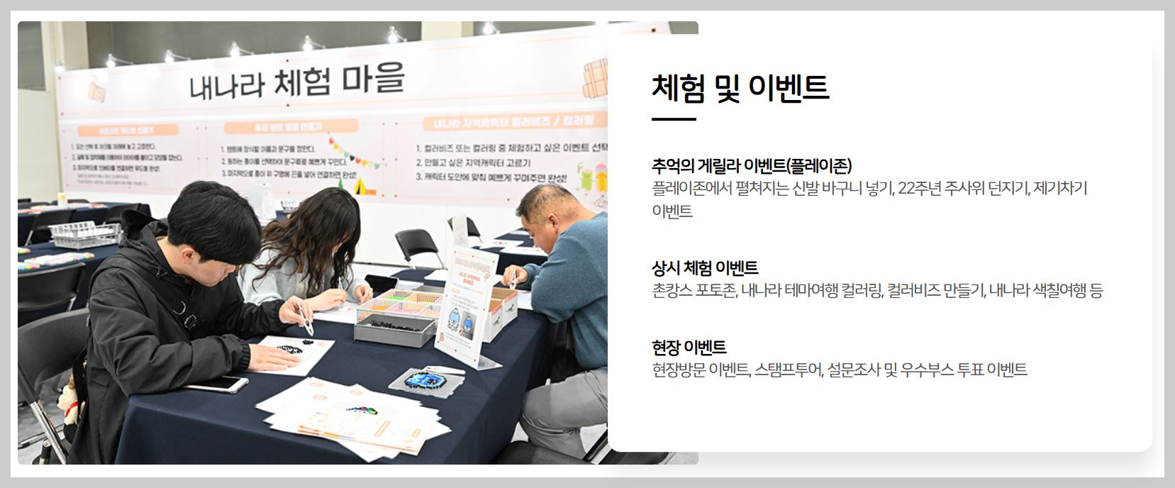 - 스탬프 투어 참여: 여러 부스를 방문하고 도장을 찍으면 기념품을 받을 수 있음