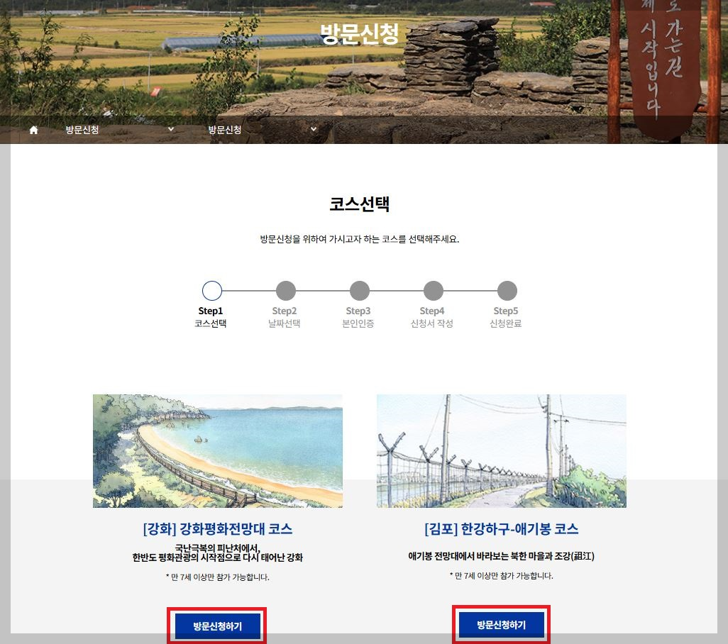 ▲ 원하는 코스 선택하여 방문신청 바로가기 ▲