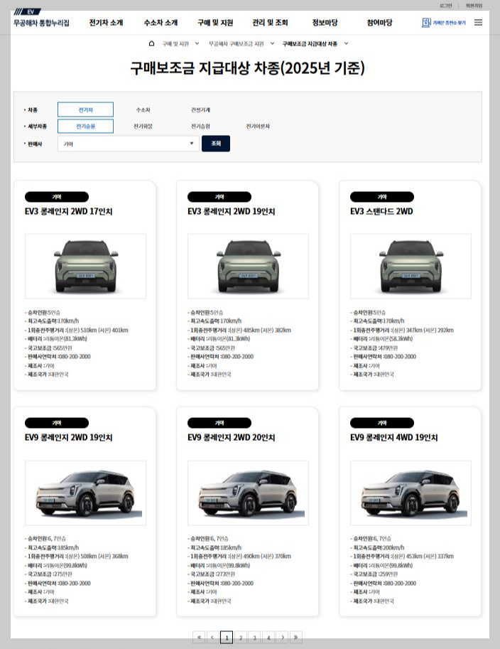 - 환경부 전기차 보조금 지원 대상 차종 확인