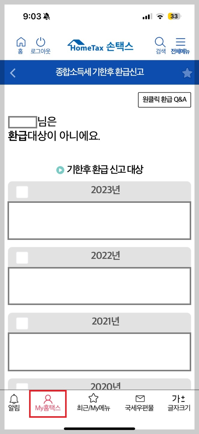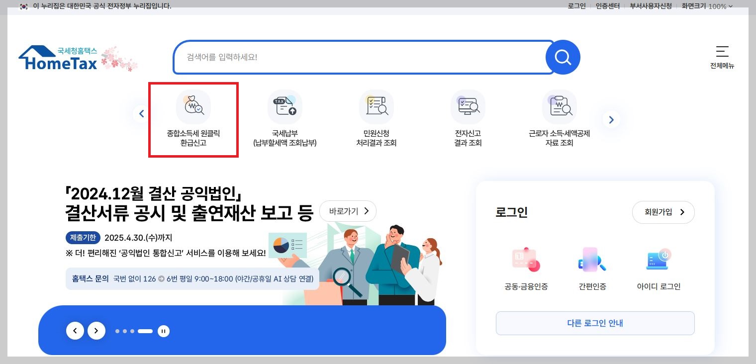 국세청 홈택스에서 종합소득세 원클릭 환급 신청하는 방법