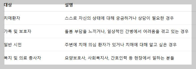 특히 이 치매상담센터는 단순한 정보 제공을 넘어, 정서적 지지와 현장 중심의 실질적 조언을 함께 제공한다는 점에서 차별화된 서비스를 제공합니다.
